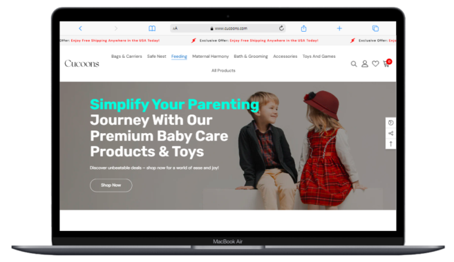 Shopify also works smoothly on phones, tablets, and computers, so parents can shop from anywhere, even while holding their baby! Plus, the platform helps Cucoons easily manage inventory, track orders, and connect with customers. With Shopify, Cucoons can focus on helping parents find the best products while the website takes care of the rest.