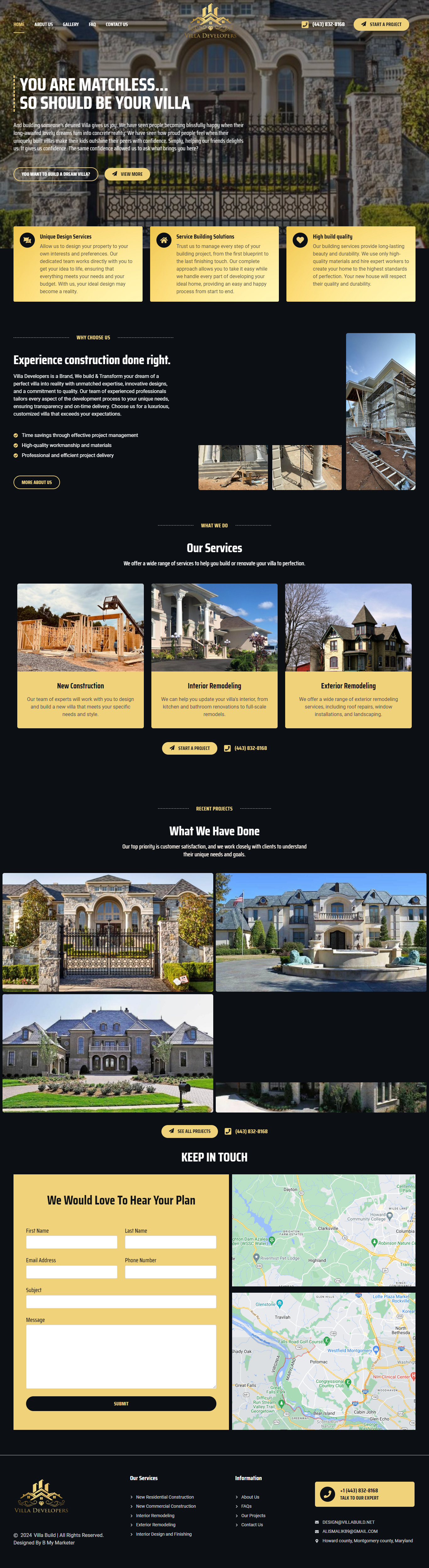 Our front-end and back-end developers have utilized the latest programs to create a website for Villa Build Developers that follows the latest industry trends. Developers used coding languages like HTML, CSS, and JavaScript. Site architecture was designed for easy navigation, and SEO best practices were integrated. We have incorporated a scalable UI/UX design that is customizable on a secure domain and mobile-friendly.
