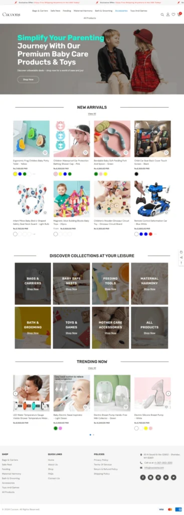 With their target audience as new parents, Cucoons wanted a user-friendly website. After consultation, we mutually decided that Cucoons should have a Shopify website. Shopify is a simple and trusted platform that allows Cucoons to showcase all their baby products in one place. It’s secure, so customers can safely buy products using their preferred payment methods.