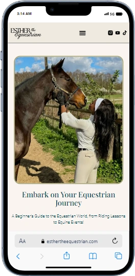 Google Analytics helped us improve the content plan for Esther the Equestrian by giving us information about how people used the website. Our SEO experts used tools for platforms like WordPress to make managing meta descriptions, keywords, and website architecture straightforward. We used different tools to speed up the website's pages so that users would have a better experience and it would rank higher in search engines. A strategic backlink analysis also helped us find and gain valuable links that increased the website's authority. Our work on mobile optimization made Esther the Equestrian's website available and easy to use on all devices, so customers who are always on the go could use it.