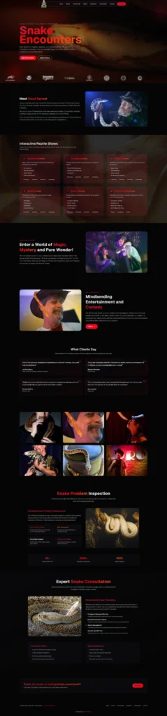 We developed a fast and modern website using Next.js to deliver a smooth experience across all devices. The new website was designed with clean UI/UX, easy navigation, and strong call-to-action sections so customers can quickly explore services, check event options, and send booking inquiries. We also created dedicated service pages for snake encounters, reptile events, educational sessions, and photoshoots. A high-quality gallery and clear content layout helped showcase the brand professionally, while performance improvements ensured users could access information instantly without delays.