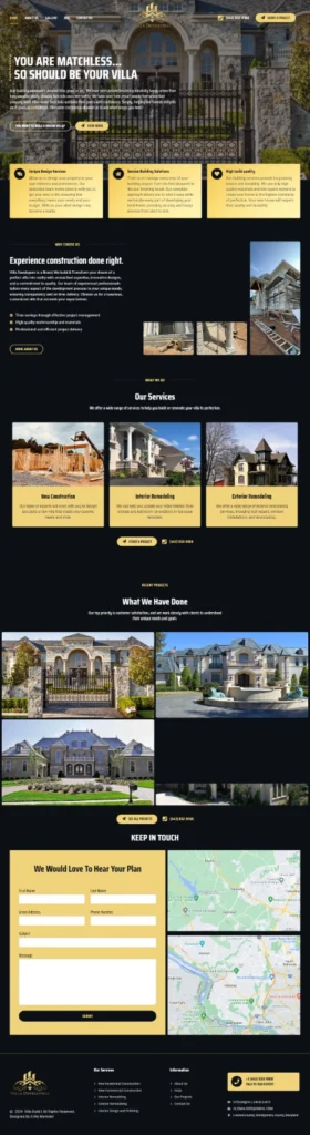 Our front-end and back-end developers have utilized the latest programs to create a website for Villa Build Developers that follows the latest industry trends. Developers used coding languages like HTML, CSS, and JavaScript. Site architecture was designed for easy navigation, and SEO best practices were integrated. We have incorporated a scalable UI/UX design that is customizable on a secure domain and mobile-friendly.